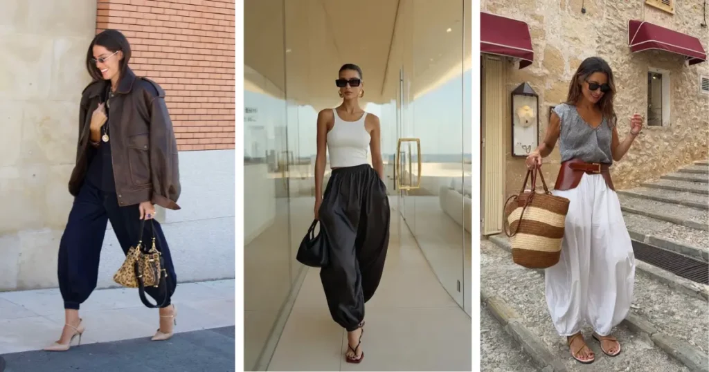 As calças aladim, com seu corte solto e confortável, estão fazendo um retorno triunfante e se destacando como uma das