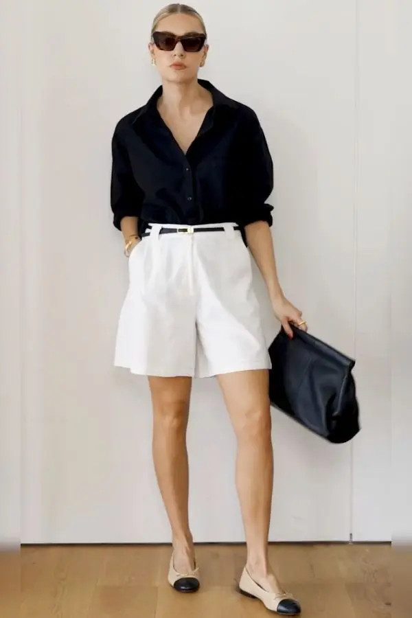Shorts Brancos: Use um shorts branco de tecido fluido com uma blusa regata para equilibrar o look e trazer um toque sofisticado.