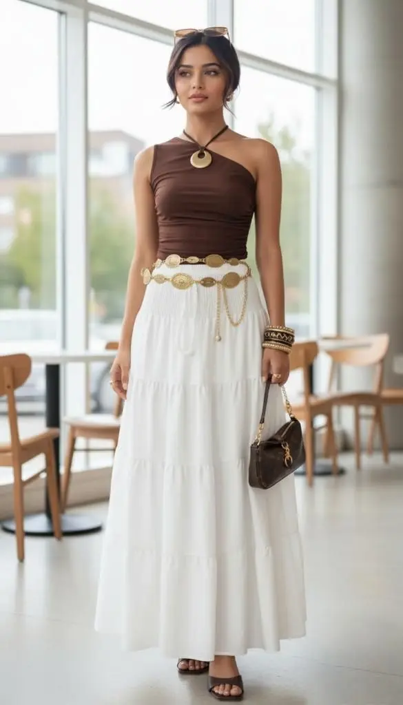 Cintos: Um cinto em uma cor marcante pode definir a cintura e adicionar um charme especial ao seu visual branco.