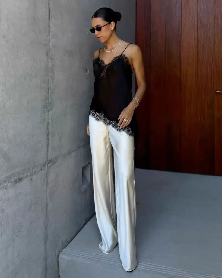 O cetim rendado surge como uma das principais tendências da estação, unindo sofisticação e delicadeza em peças que garantem um toque especial a qualquer look. Com seu brilho sutil e a textura dos detalhes em renda, esse material é perfeito para ocasiões que variam desde um jantar romântico até eventos mais formais.