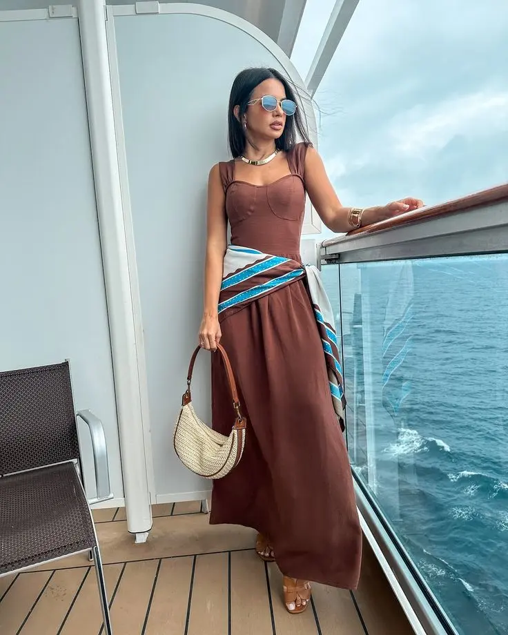 Detalhe na cintura: Ao usar vestidos soltos, amarre um lenço na cintura para acentuar a silhueta e adicionar um detalhe de cor.