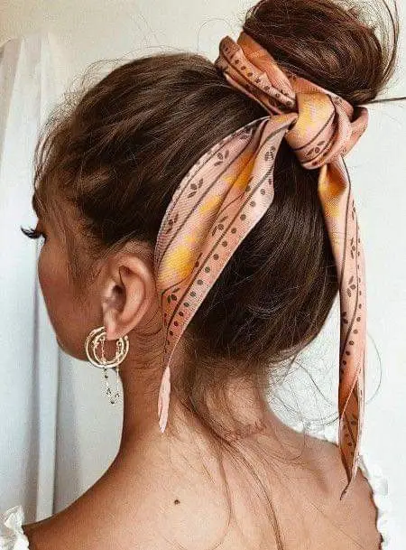 Enrole o lenço na base do coque. Dá um toque sofisticado e feminino em segundos.