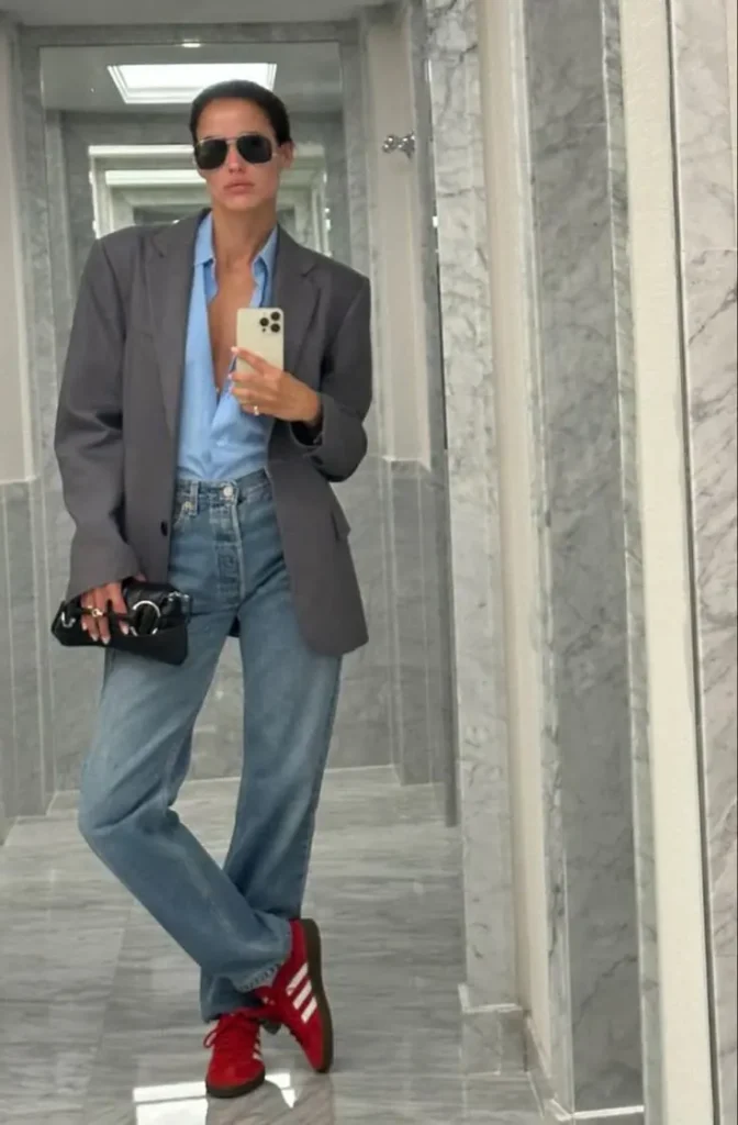 A alfaiataria ganha um ar moderno e despojado quando combinada com tênis colorido. Essa mistura equilibra elegância e estilo urbano, deixando o look atual e cheio de personalidade.