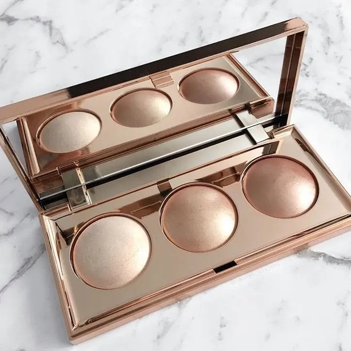 O iluminador é essencial para alcançar aquele brilho saudável. Prefira opções cremosas ou líquidos que podem ser aplicados com os dedos, garantindo um acabamento suave nas áreas altas do rosto, como as maçãs do rosto, arco do cupido e abaixo das sobrancelhas.