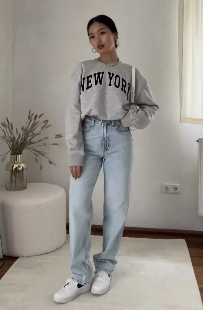 Look Sportivo: Combine sua calça com um moletom oversized e tênis para um visual confortável e moderno.