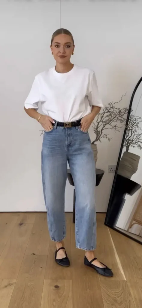 Look Casual: Combine sua calça jeans com uma camiseta branca básica e tênis. Adicione uma jaqueta jeans para um toque extra.