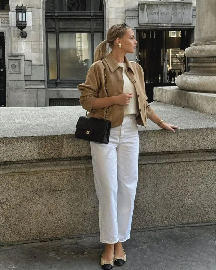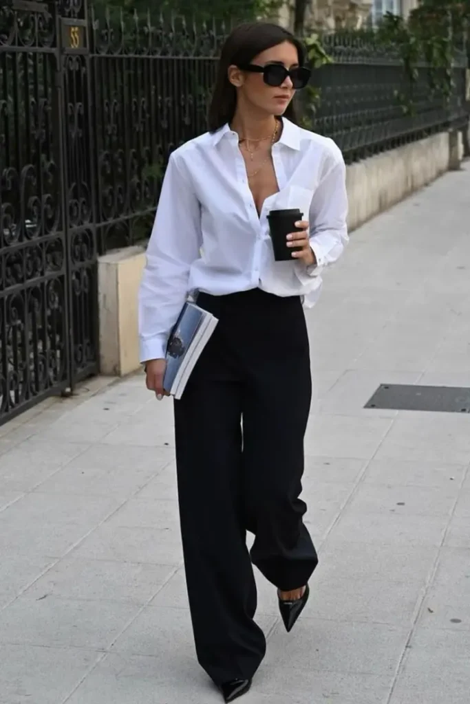 Camiseta branca básica: Uma peça versátil que combina com tudo, do jeans ao midi skirt.