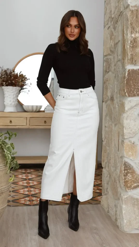 Saia midi: Fala de elegância e versatilidade, ideal para qualquer estação do ano.