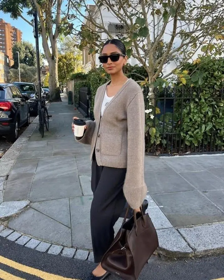 Cardigan de lã: Para os dias mais frescos, acrescenta um toque de estilo.