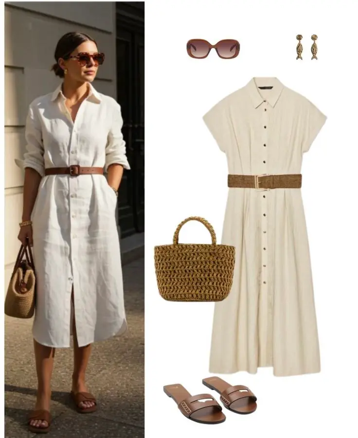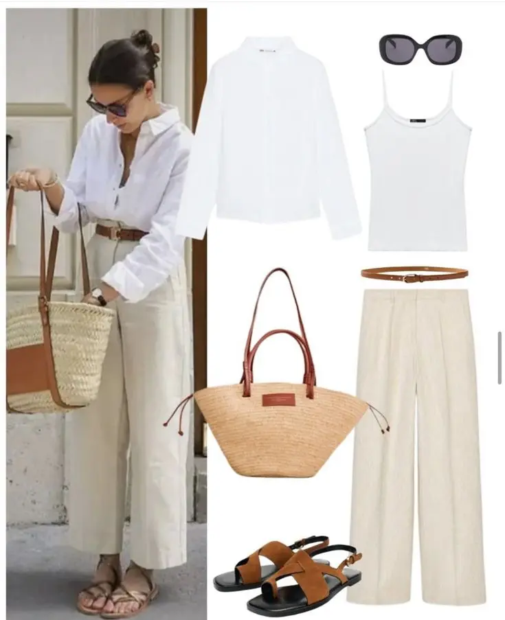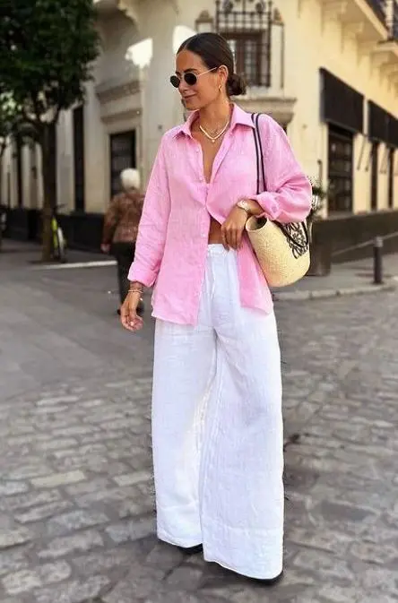 Camisas de Linho: Uma camisa de linho branca ou colorida é uma peça-chave. Use-a aberta sobre uma regata ou por dentro de uma saia midi, criando um visual chic e descontraído.