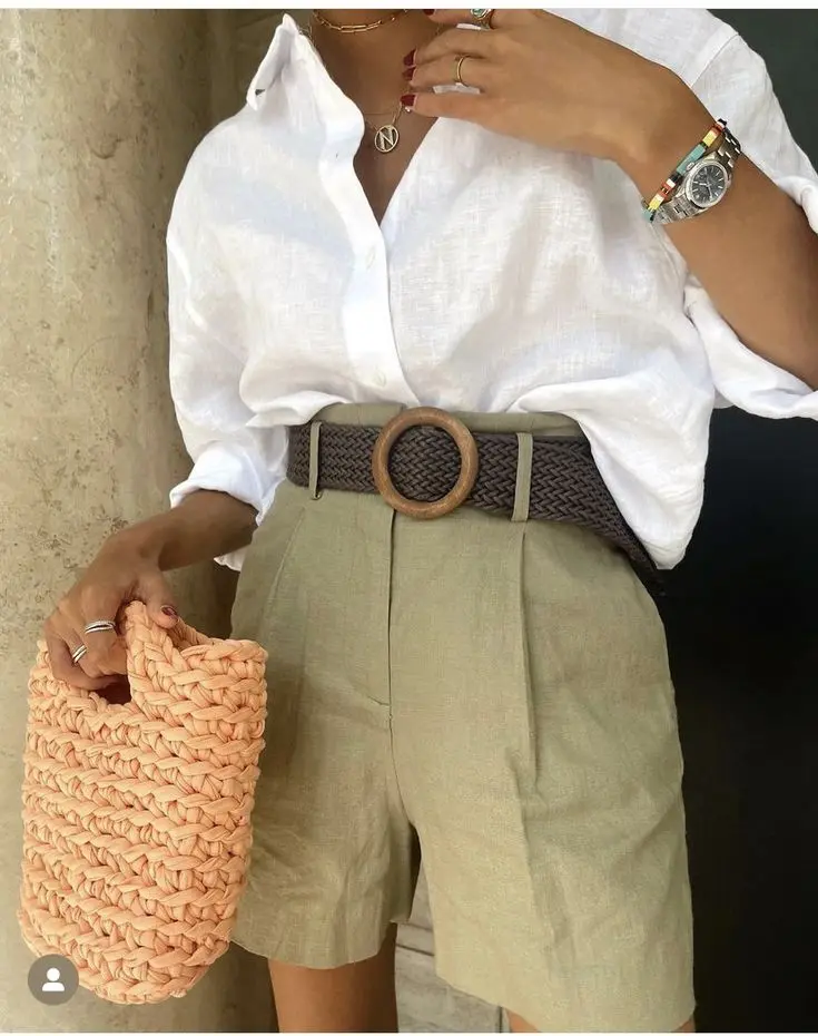 Shorts de Linho : Perfeitos para climas quentes, eles valorizam a silhueta e trazem um ar leve e moderno ao visual. Em tons neutros ou cores suaves, são fáceis de combinar e funcionam tanto em produções despojadas quanto em propostas mais refinadas, garantindo frescor, estilo e praticidade em qualquer ocasião.