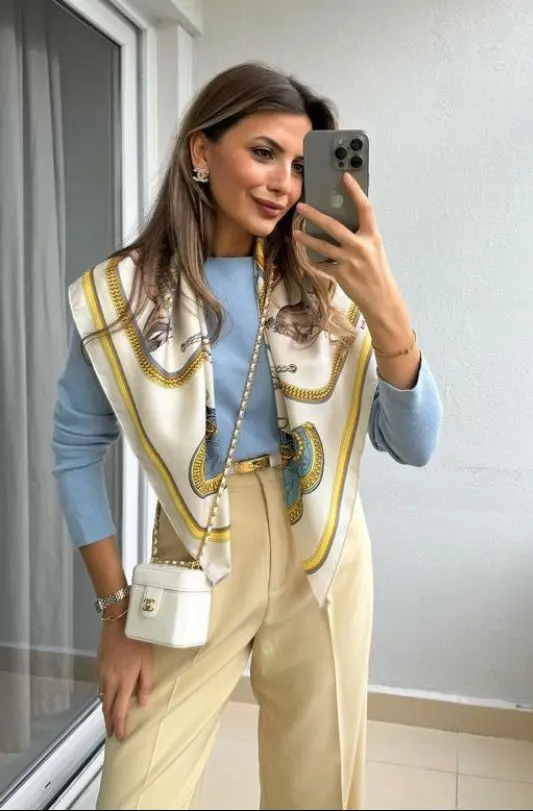 Apoio ao dia a dia: Aproveite a versatilidade de uma terceira peça como um colete ou um lenço grande para complementar diferentes looks. Explore opções que se encaixem em diversas situações, como uma saída casual ou um evento social.