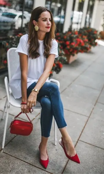 • Acessórios: Bolsas vermelhas e sapatos de salto na mesma tonalidade ajudam a compor um visual harmônico e cheio de estilo.