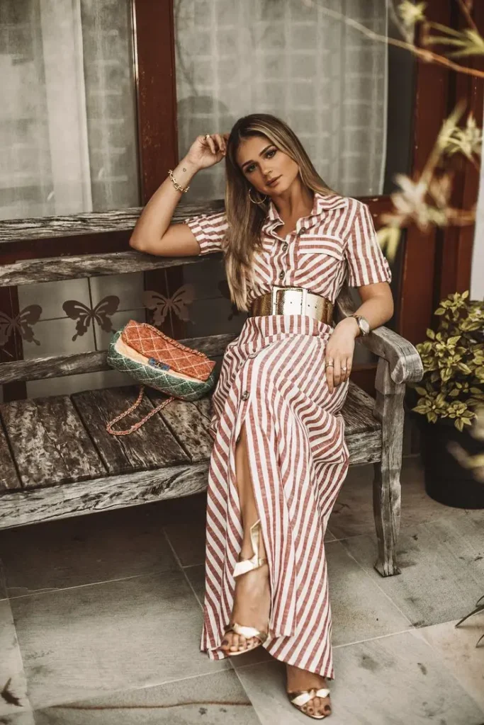 Listras: As estampas listradas são clássicas e atemporais, capazes de transitar entre o casual e o sofisticado. Versáteis, podem alongar a silhueta quando usadas na vertical ou transmitir modernidade e estilo.