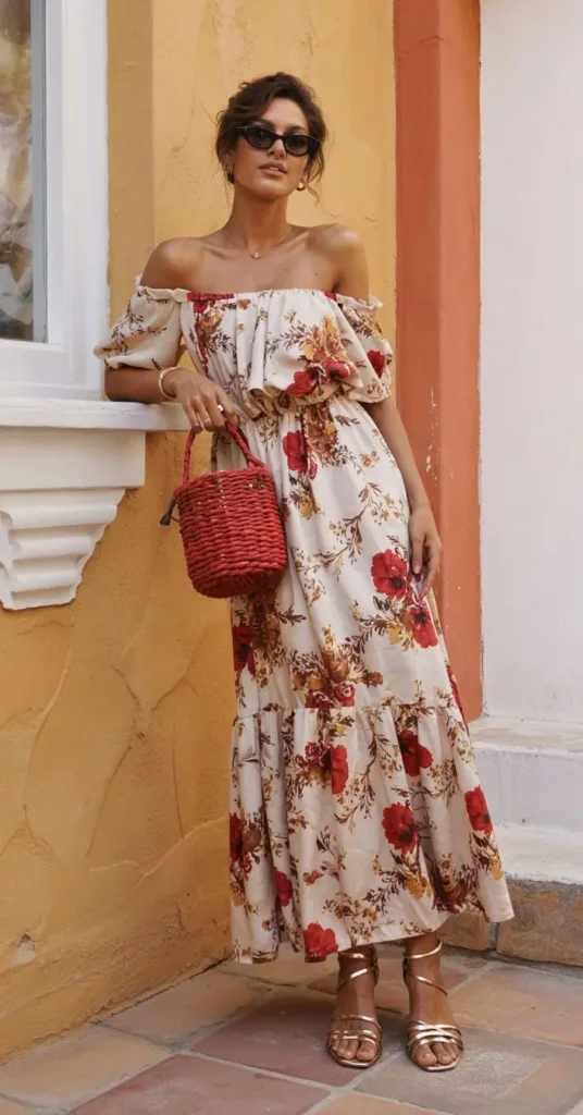 Eventos à Noite: Vestidos longos com estampas vibrantes são ideais para festas. Adicione um cinto statement para definir a silhueta e complete com acessórios que contrastem.